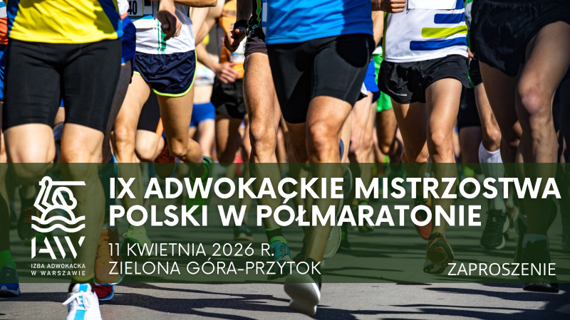 Naczelna Rada Adwokacka wraz z ORA Zielona Góra zapraszają do wzięcia udziału w IX Adwokackich Mistrzostwach Polski w Półmaratonie, które odbędą się w dniu 11 kwietnia 2026 r. (sobota) w Zielonej Górze, a dokładnie w miejscowości Przytok k/Zielonej Góry.