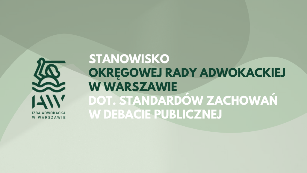 Okręgowa Rada Adwokacka w Warszawie wzywa członków wszystkich organów konstytucyjnych do refleksji nad stanem debaty publicznej z ich udziałem. Szczególna odpowiedzialność w tym zakresie spoczywa na osobach piastujących funkcje przewodniczących lub kierujących pracami organów, którzy zobowiązani są do zachowania najwyższych standardów rzeczowości, kultury i poszanowania prawa wszystkich uczestników i stron postępowania.