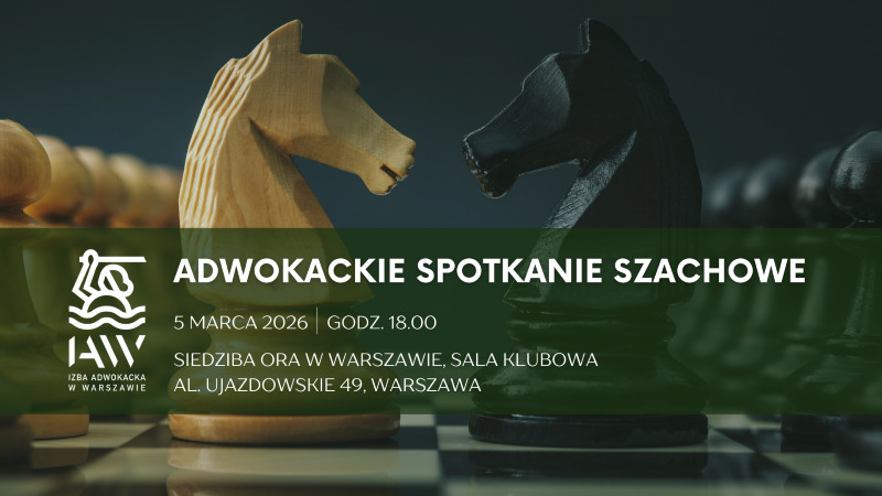 Serdecznie zapraszamy na adwokackie spotkanie szachowe dla członków Izby Adwokackiej w Warszawie, które odbędzie się 5 marca (czwartek) br. o godzinie 18:00 w Sali Klubowej Okręgowej Rady Adwokackiej w Warszawie (Al. Ujazdowskie 49).