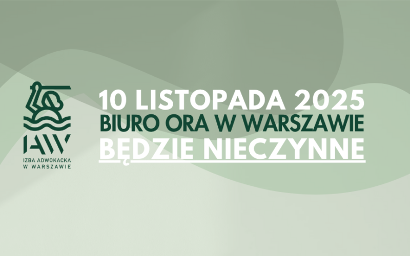 Informujemy, iż w poniedziałek, 10 listopada br. wszystkie jednostki Biura ORA oraz pokoje adwokackie będą nieczynne.
