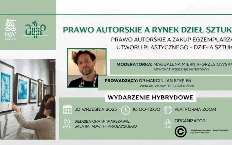 Sekcja Prawa Autorskiego i Nowych Technologii przy ORA, zaprasza na wykład, który odbędzie się 30 września 2025 r. w godz. 10:00-12:00 w sali Krajewskiego w siedzibie...